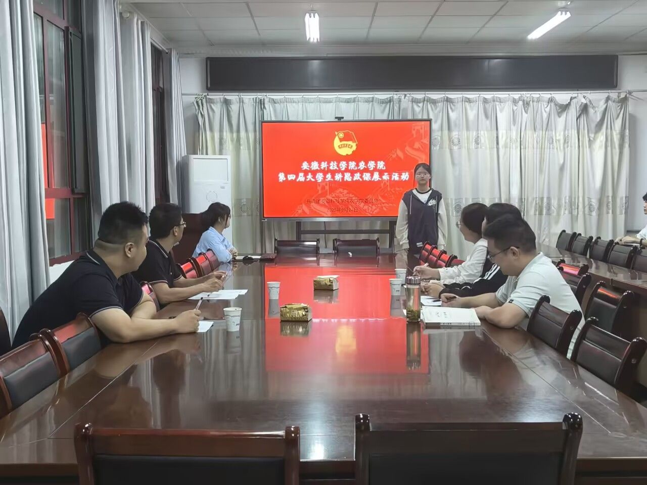 9月24日晚,农学院举办第四届大学生思政课展示比赛。农学院党委副书记张轶辉,专职辅导员汪道兵、杨孝延、薛晶晶、王睿担任比赛评委。