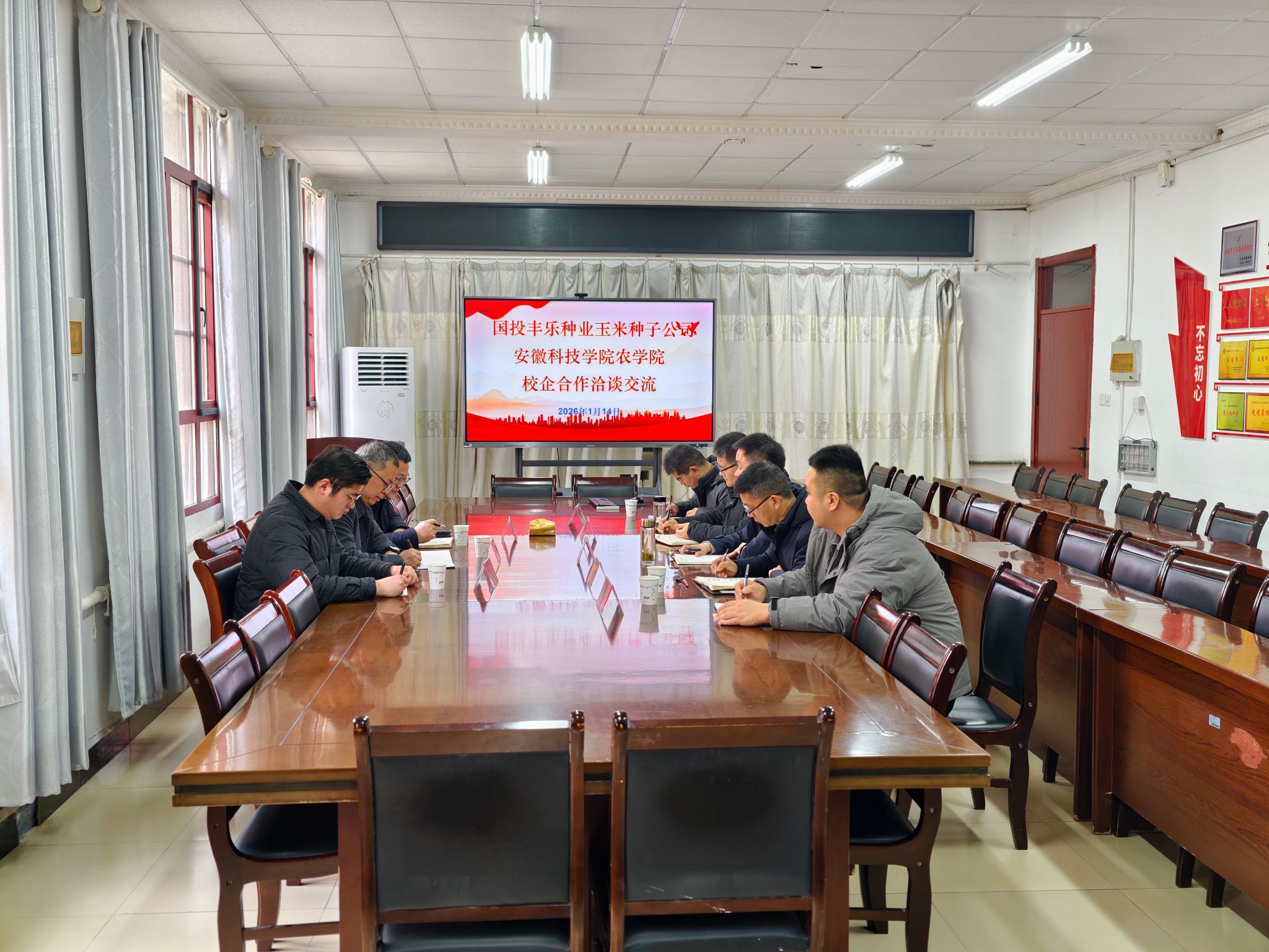 1月14日上午,农学院与国投丰乐种业股份有限公司玉米种子公司校企合作洽谈会在农学院会议室举行。丰乐种业玉米种子公司总经理张业文、副总经理陈忠信、综合办公室副主任何旭东,农学院党委副书记张轶辉、副院长李文阳和相关教师参加,会议由农学院党委副书记(主持工作)唐仁生主持。