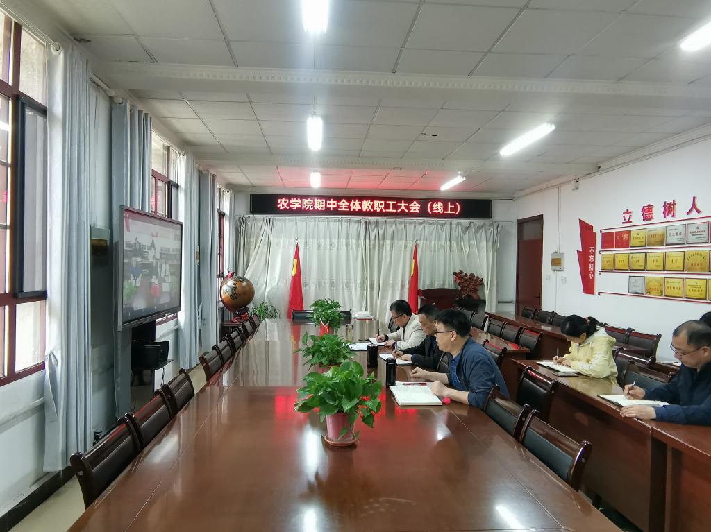 崔广荣通报了农学院2021年目标管理考核奖励和效能奖分配方案,解读了学校2022年目标管理考核实施意见,就科技特派团申报工作跟进、科技进步奖申报、联合培养研究生管理、毕业论文设计、毕业生就业、非毕业生返校等工作进行了强调要求,他要求全体教职工要提高政治站位,克服当前疫情防控形势下各项工作开展的不利因素,希望全体教职工要进一步强化团结协作、树立信心、铆足干劲、争先进位;学院领导班子成员、各系各中心负责人要紧紧围绕学校和学院中心工作,对标对表、强化管理、优化服务,全力推进并高质量完成学院2022年各项重点工作任务。