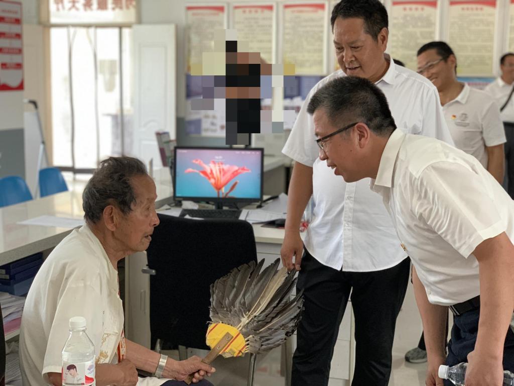 何世潮等为老人带去慰问品,认真聆听老人的教诲,对老人所作的贡献表达衷心崇敬之情,并叮嘱他要保重身体,保持心情愉快。在战争年代,老党员、老战士不怕流血牺牲,为党和国家事业作出了重要贡献,他们是有形的正能量、鲜活的好教材、学习的好榜样,作为新时代党员要向老战士、老党员学习,从他们身上感悟初心使命、汲取奋进力量,做一名合格的共产党员。