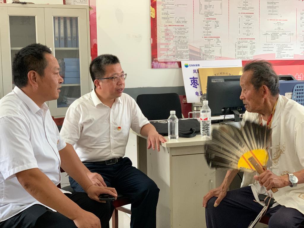 在枣巷镇老巨村党群服务中心,在老巨村党总支书记巨青松的主持下,何世潮一行拜见了巨万起老人,并与老人促膝谈心,详细询问其身体和生活情况。巨万起老人于1946年入伍,曾服役于当时的汽车连部队,负责为前线运送枪支弹药,参加过淮海战役、渡江战役。于1956年退伍,回村后当起木匠,并将自己的革命精神延续到现在,生活中依旧节俭朴素,为后辈树立了榜样。在交谈中,当回忆起当年场景时,老人仍然激情满怀,热泪盈眶,他说当时自己虽然是后勤补给工作,但同样为革命做出了贡献,老人动情地说他现在很知足,他已经比当年的战友多活了70多年,而且现在国家非常关心他们这些老战士,他们生活得很幸福。