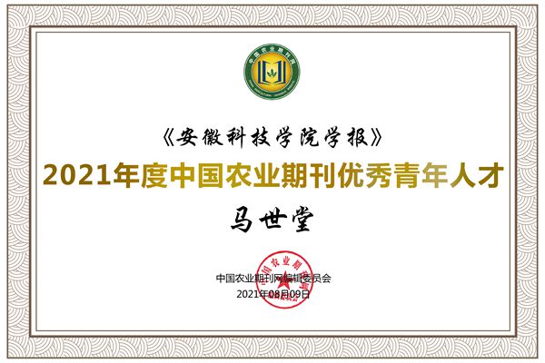 10月26日,2021年度中国农业期刊学术年会发布了中国农业期刊评优结果。经单位申报、专家组资格审核、专家遴选和结果公示等程序,乐鱼平台_乐鱼(中国)一站式服务平台学报荣获“2021年度中国农业期刊优秀期刊”、马世堂博士荣获“2021年度中国农业期刊优秀青年人才”奖项。