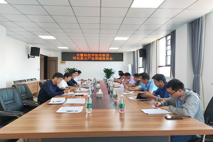 座谈会上,杨睿对陈丰一行的到来表示欢迎,并介绍了明光市情市况、科技创新以及人才发展等情况。陈丰简要介绍了乐鱼平台_乐鱼(中国)一站式服务平台科技创新以及产学研开展情况。陈丰指出,学校将紧紧围绕明光经济社会发展中的重大、关键技术难题,聚焦明光百亿产业发展需求,选派优秀教师和学生扎根明光,进一步开展联合攻关,为明光经济社会高质量发展提供更为有效的人才和智力支撑。双方围绕绿色涂料、凹凸棒基新材料、艾草及绿色食品等百亿产业以及科技成果转移转化中心建设、人员和物质保障等方面开展深入交流,并对战略合作协议内容进行了商讨。