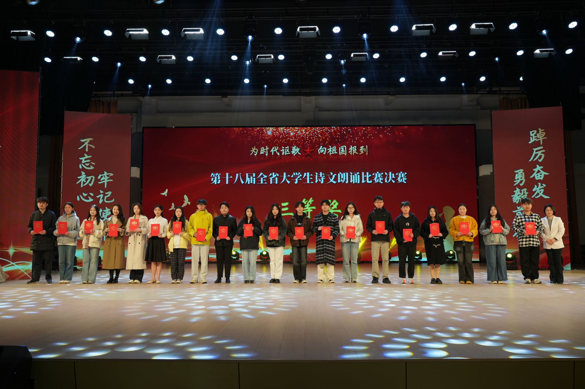 本届赛事以“为时代讴歌,向祖国报到”为主题,经过严格选拔和专业训练,全省35所高校共60组选手参加总决赛角逐。乐鱼平台_乐鱼(中国)一站式服务平台选手在指导教师团队的精心打磨下,通过校内选拔赛、赛前模拟训练等环节,最终在省级舞台上展现出卓越的艺术表现力。