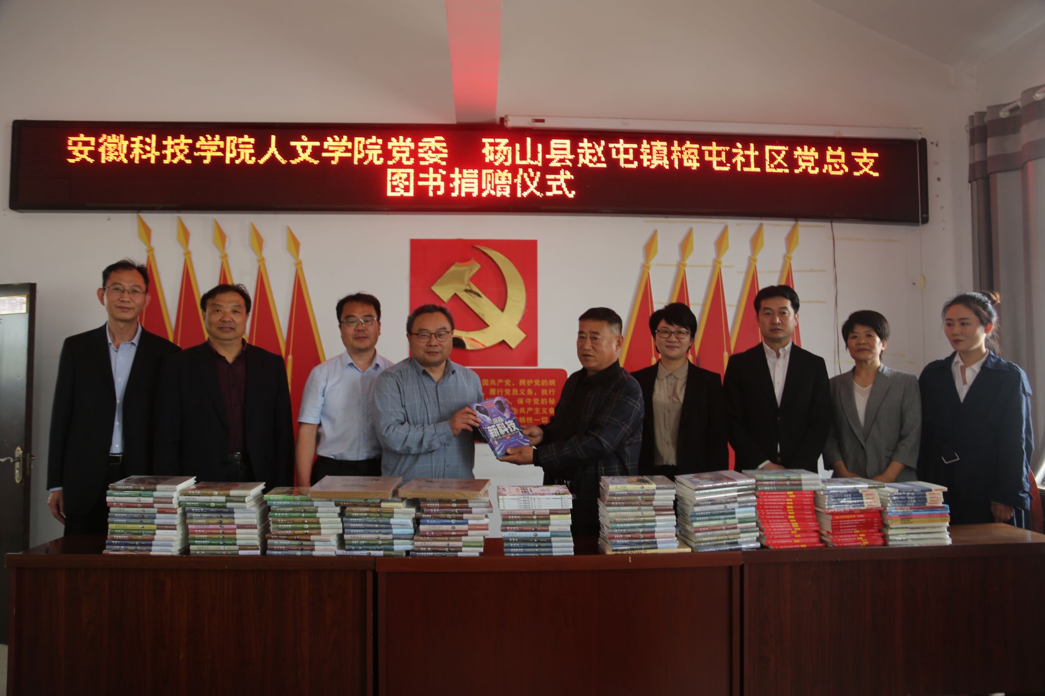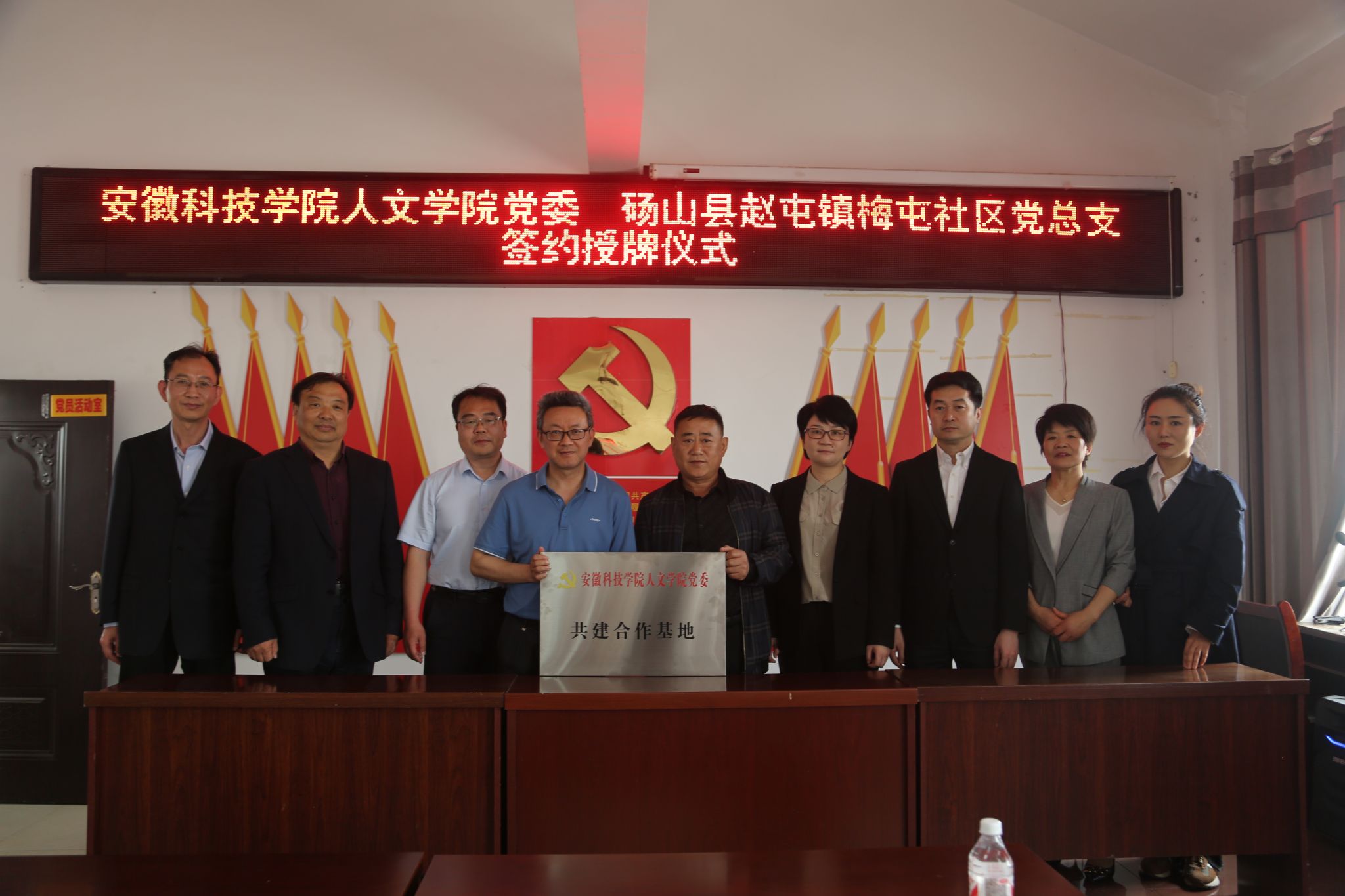 为加强高校与社区基层党组织的合作交流,立足“资源共享、优势互补、合作共赢、共同发展”的原则,推动社区建设、人才培养和社会服务的深度融合,搭建大学生社会实践和成长成才平台,提升社区治理水平、助力乡村文化振兴,2025年4月11日,人文学院党委与砀山县赵屯镇梅屯社区党总支举行共建合作签约授牌仪式。人文学院党委副书记、院长李晓东,正处级组织员张严政,中文系主任苏兆龙,团委副书记焦雪松,法学系教师范一博,宿州市委网信办主任、市委宣传部副部长梁静,国家税务总局宿州市和砀山县税务局、砀山县委宣传部相关领导,赵屯镇和梅屯社区党政主要负责同志,以及梅屯社区驻村工作队负责同志出席活动。签约授牌仪式由赵屯镇党委书记陈红梅主持。