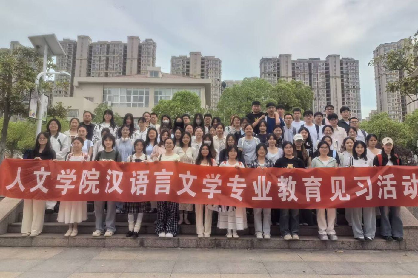 为落实汉语言文学专业人才培养方案,助力师范生感知教育前沿、夯实从教基础,5 月 9 日至 21 日,人文学院汉语言文学专业 2022 级全体学生赴滁州市第六中学、东坡中学开展系列教育见习。人文学院副院长牛永辉、中文系主任苏兆龙和任课教师李坚怀、陆山花、李珊、王振锋等带队前往。