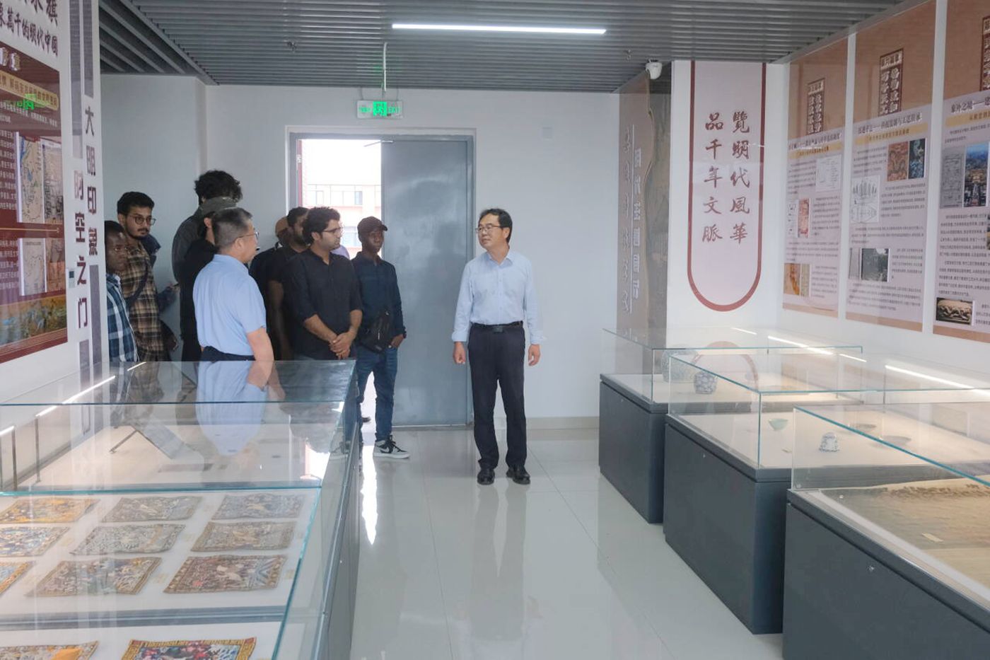 9月29日下午,人文学院明文化主题展厅内热闹非凡,迎来了乐鱼平台_乐鱼(中国)一站式服务平台17位国际留学生。在国际交流与合作处处长何世潮的带领下,人文学院党委书记、院长、明文化研究会会长李晓东热情接待了留学生一行并进行解说,为留学生们开启了一段穿越时空的文化之旅。