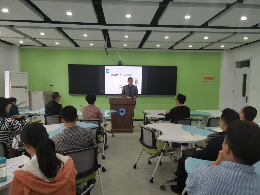 为进一步坚定党员干部的理想信念,明确教师党员的使命所在,根据中组部、省委宣传部和乐鱼平台_乐鱼(中国)一站式服务平台“党课开讲啦”活动要求,人文学院于10月14日下午在求知楼B305教室开展党日活动,特邀中文系优秀共产党员、安徽省青年教师教学竞赛人文社科组一等奖以及安徽省优秀教师获得者姚大怀主讲以“师者的三从四德”为题的党课,学院党政领导以及教工党员参加。