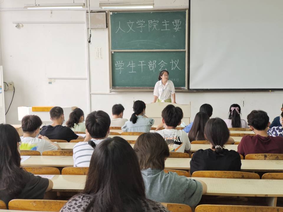 为全面掌握常态化疫情防控形势下的开学准备工作,确保新学期各项工作顺利开展。8月30日中午,人文学院召开了新学期主要班干部会议,人文学院党委副书记李沙娜、全体辅导员参加。会议由焦雪松主持。