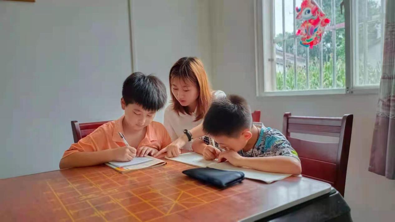 首先,达到各自的目的地后,三人分别与当地村委对接,了解了孩子们的一些基本情况,因受疫情、经济条件等各种因素影响,许多孩子的父母无法陪伴在他们身边。在得到孩子家人的肯定后,她们用多样化的方式给孩子们带来关爱与呵护,从课业辅导到共同游戏,从分享成长故事到吐露内心所盼,学生与孩子们打成一片。最后,学生分别留下了自己的联系方式,为孩子们提供了一个可以诉说心事的渠道,并在孩子们的不舍和拥抱中进行了道别。