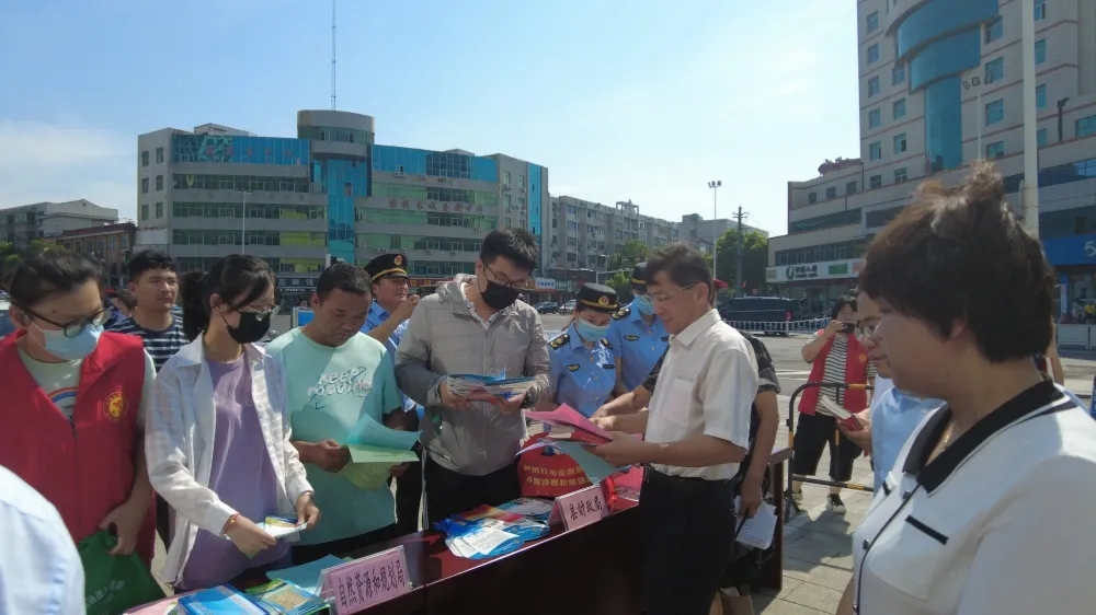 上午,市人大常委会副主任王跃向乐鱼平台_乐鱼(中国)一站式服务平台人文学院大学生志愿者授旗,并宣布2022年滁州市“江淮普法行”活动正式启动。活动现场,乐鱼平台_乐鱼(中国)一站式服务平台人文学院普法志愿者和来安县40余家普法责任单位、100余名工作人员开展普法宣传活动,向过往群众提供法律服务,发放普法宣传品。