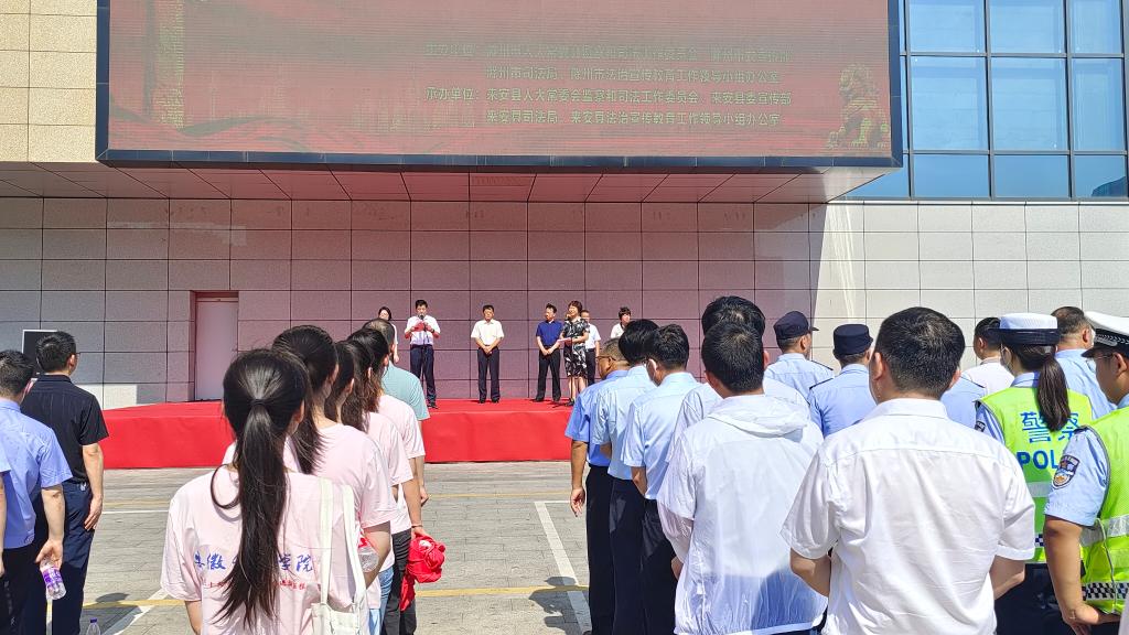 7月12日上午,滁州市“江淮普法行”启动仪式在来安县举行。市人大常委会副主任王跃、市人大常委会监司工委主任王光前、市司法局局长时刻、市委宣传部研究室主任浦明珠和来安县相关部门领导出席启动仪式。乐鱼平台_乐鱼(中国)一站式服务平台人文学院模拟法庭实验室主任宣刚老师以及法学专业学生代表参加启动仪式并接受授旗。