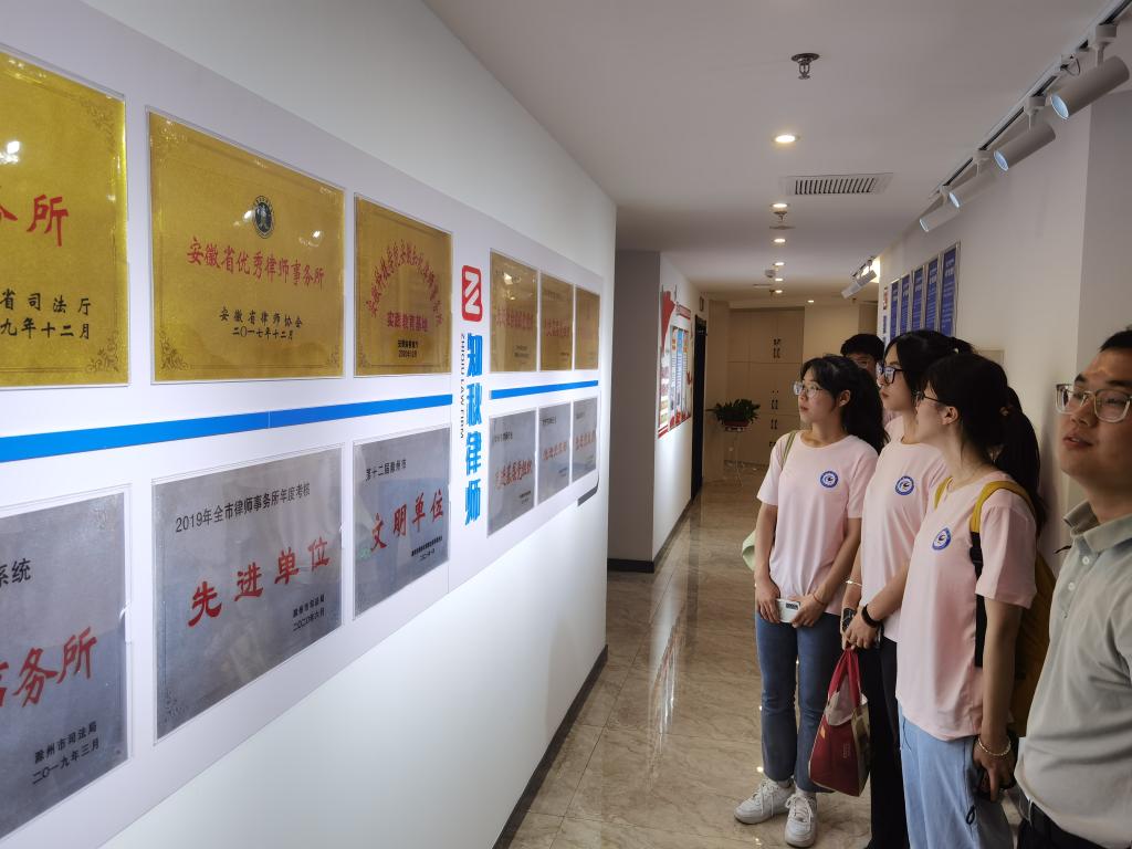 7月12日下午,人文学院2020级 “知秋班”部分同学在学院模拟法庭实验室主任宣刚老师的带领下赴安徽知秋律师事务所学习交流。