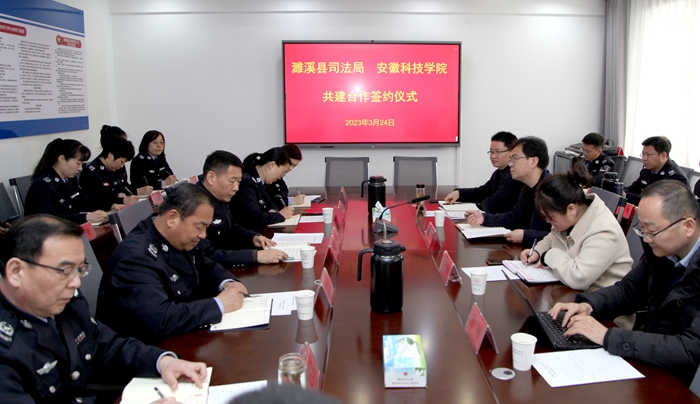 李晓东对濉溪县司法局在推动共建合作方面给予的重视和支持表示感谢,并简要介绍了学校和学院的相关情况。濉溪县司法局党组成员、政治处主任周文明介绍了濉溪县司法局主要情况,详细介绍了近年来濉溪县司法行政职能发挥情况以及重点工作开展情况。牛永辉就共建合作协议履行的方式和内容作了说明,双方将在人才培养、专家互聘、基地共建、团队共享、项目共研等方面,开展长期稳定的全方位合作,实现理论与实践的良性互动,实现政校双方的互利共赢。