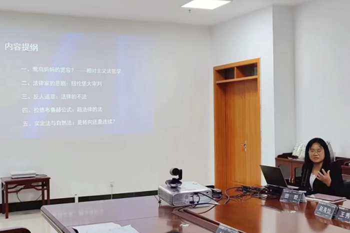 下午,四十多位中青年学者在四场分论坛上进行了主题发言。人文学院田野老师出席了题为“西方近现代法律思想”的第四分论坛,并发表了与参会论文《从相对主义到“拉德布鲁赫公式”:拉德布鲁赫论实定法与自然法》同名的主题发言。在发言中,田野老师介绍了拉德布鲁赫的相对主义法哲学思想、拉德布鲁赫关于纽伦堡审判中法律家命运的反思、拉德布鲁赫针对二战后“反人道罪”审判提出的“法律的不法”概念,“拉德布鲁赫公式”对“超法律的法”的承认,进而对拉德布鲁赫法哲学主张是否有明确的前后转向发表了自己的看法。田野的发言得到与会点评专家的认可,专家指出,该研究的进一步深入可对当今中国法治问题提供借鉴意义。会后,田野与来自北京大学、西北政法大学、西南政法大学、厦门大学、陕西师范大学等多所院校的专家学者进行了面谈交流和实地考察。