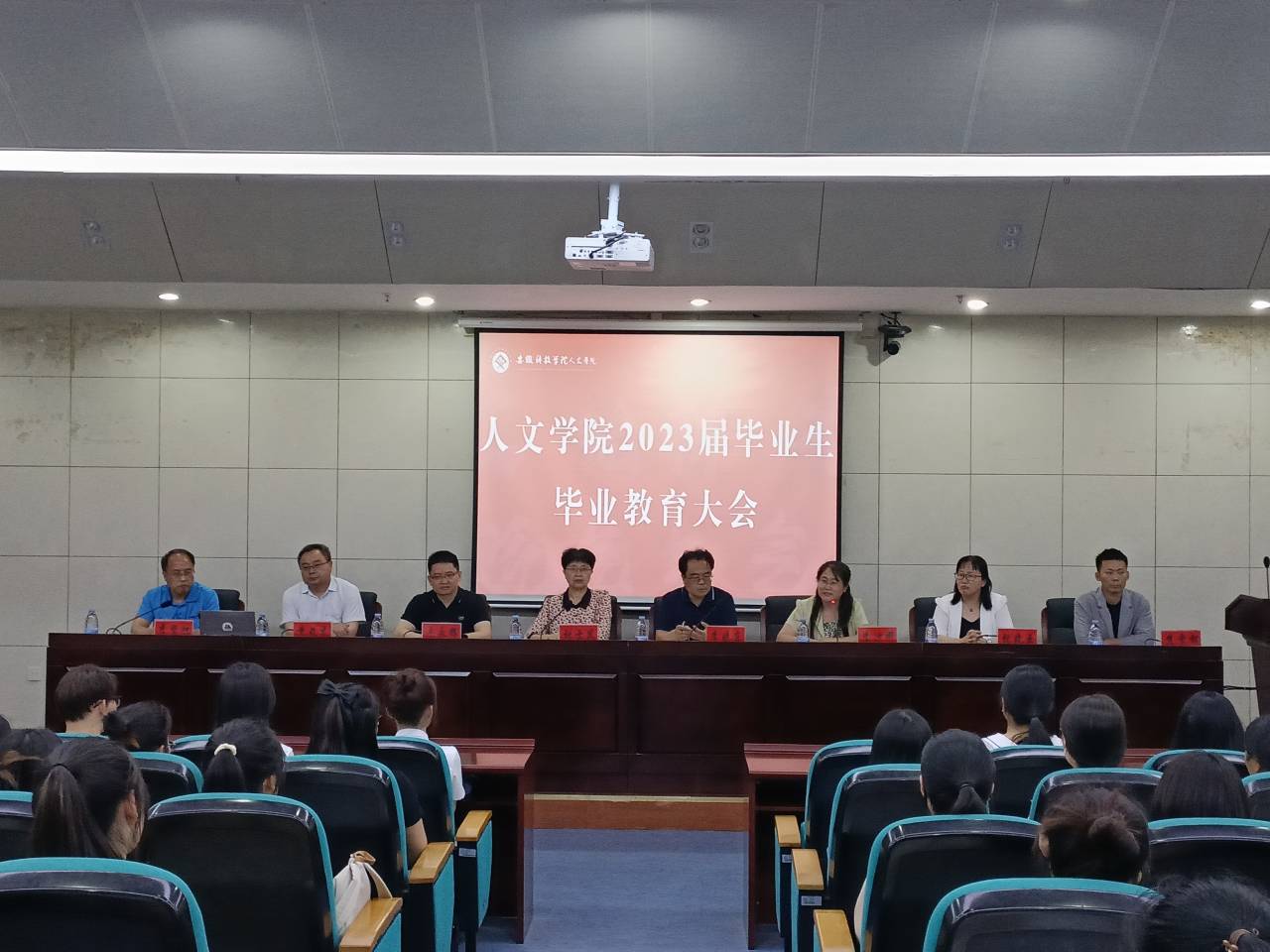 为引导毕业生坚定理想信念,增进毕业生对母校深厚感情,5月16日下午,人文学院在会议中心一楼报告厅召开2023届毕业生毕业教育大会。人文学院党委书记杜士凤,党委副书记、副院长李晓东,副院长牛永辉,党委副书记、纪委书记李沙娜,中文系主任苏兆龙,法学系主任张晓云,中文系教授李坚怀,辅导员焦雪松、方明旺、徐琦琦以及2023届全体毕业生参加本次会议。会议由杜士凤主持。