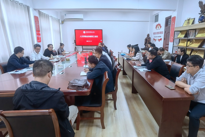 10月11日下午,人文学院在学院会议室召开全体教职工会议。人文学院党委副书记、副院长李晓东、正处级组织员张严政、副院长牛永辉、党委副书记李沙娜及全体教职工参加会议。会议由李晓东主持。
