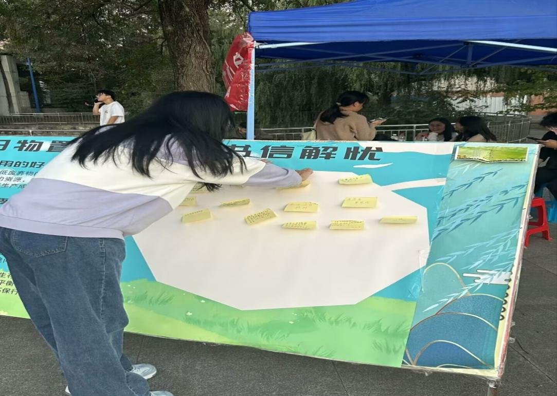 11月1日,人文学院在西区小广场举办“心忧何解”书信解忧活动。鼓励同学们通过现场书写或给官q留言的方式来倾诉自己的烦恼,热心的小伙伴们来给出一些建议和鼓励。此活动在帮助大家释放并缓解压力和烦恼的同时,还营造了校园内互帮互助的温馨氛围。