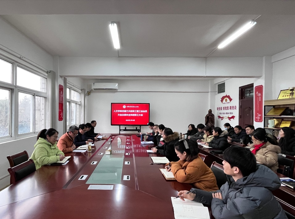 1月16日下午,人文学院召开四届三次教职工暨工会会员大会及期末全体教职工大会,会议由学院正处级组织员张严政主持。