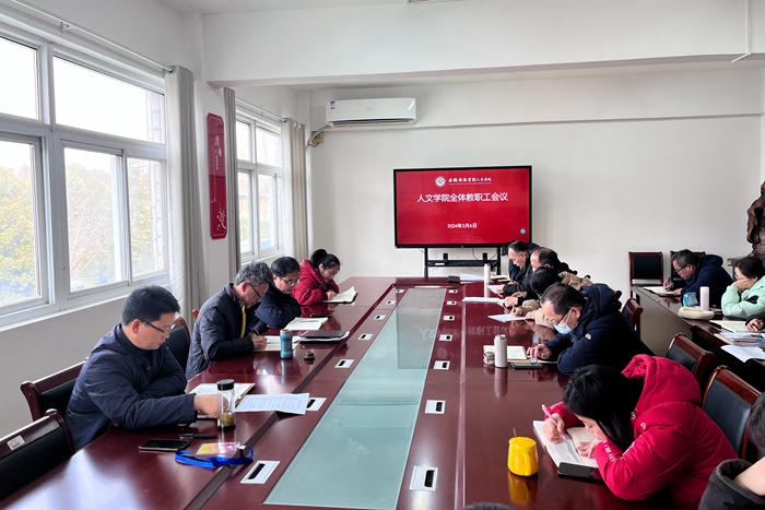 3月6日下午,人文学院在学院会议室召开2024年春季学期全体教职工会议。人文学院党委副书记、院长李晓东、正处级组织员张严政、副院长牛永辉、党委副书记李沙娜出席会议。会议由李晓东主持。