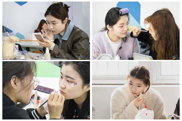 本次比赛以“春”为主题,共分七个小组进行。选手们根据比赛主题进行妆容绘制,展现属于她们的青春风采。蓝色分层的妆容渲染,一只翩翩起舞的蝴蝶停留在面部,春风拂人面,似春日花朵的盛放引蝶;叠加的亮片,璀璨的妆容,从素颜到“妆”颜,精致的妆容照应华美的春日。人面桃花相映红,肌肤的自然之美,淡雅的色彩在脸庞描绘春色,选手结合个人特点,以饱满的热情将创意融合进妆容,展现着独特风采。