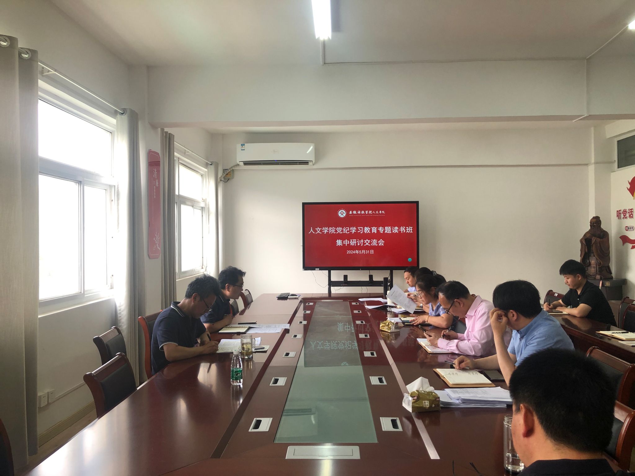 5月31日下午,人文学院党委召开党纪学习教育专题读书班集中研讨交流会暨理论学习中心组学习会议(党纪学习教育第四专题),学院党政领导、党委委员、党政办公室和团委负责人、各支部书记、工会主席参加,会议由人文学院党委副书记、院长李晓东主持。