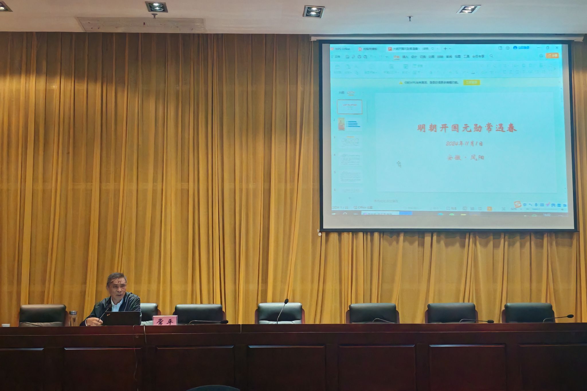 11月1日下午,应人文学院邀请,蚌埠市常遇春文化研究会顾问常平在新图书馆二楼报告厅为汉语言文学专业学生作主题“明朝开国元勋常遇春”的学术报告。2024级汉语言文学专业全体学生参加,报告会由人文学院副院长牛永辉主持。