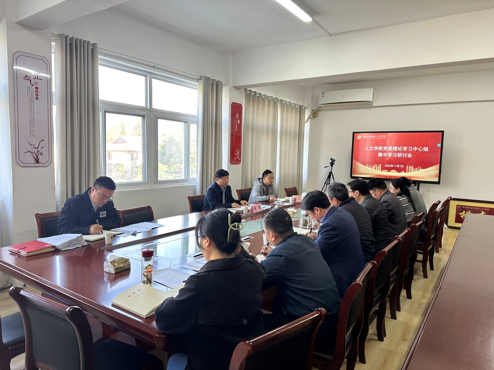 在集中学习阶段,与会人员共同学习了习近平10月17日至18日在安徽考察时发表的重要讲话《发挥多重国家发展战略叠加优势,奋力谱写中国式现代化安徽篇章》和10月28日在主持二十届中共中央政治局第十七次集体学习时发表的重要讲话《锚定建成文化强国战略目标,不断发展新时代中国特色社会主义文化》以及《求是》杂志今年第20期刊发的《习近平在文艺工作座谈会上的讲话》;与会人员还开展了习近平同志《论教育》专题学习和领导干部应知应会党内法规和国家法律专题学习,学院党委委员、法学系主任张晓云和骆绪刚教授,分别为大家讲解了行政诉讼法、中华人民共和国国家安全法的立法背景、特点和主要内容等。