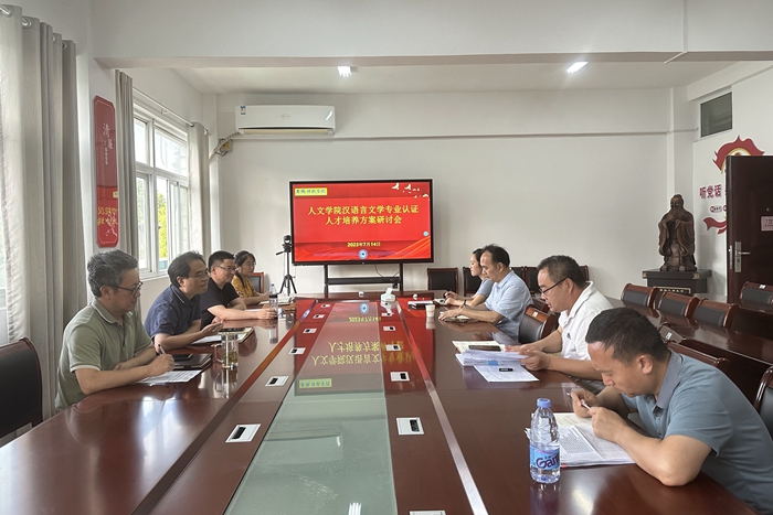 7月14日下午,人文学院在学院会议室召开汉语言文学专业人才培养方案论证会。人文学院党委副书记、副院长李晓东、正处级组织员张严政、副院长牛永辉、党委副书记李沙娜、汉语言文学专业认证各小组负责人参加会议,会议由李晓东主持。