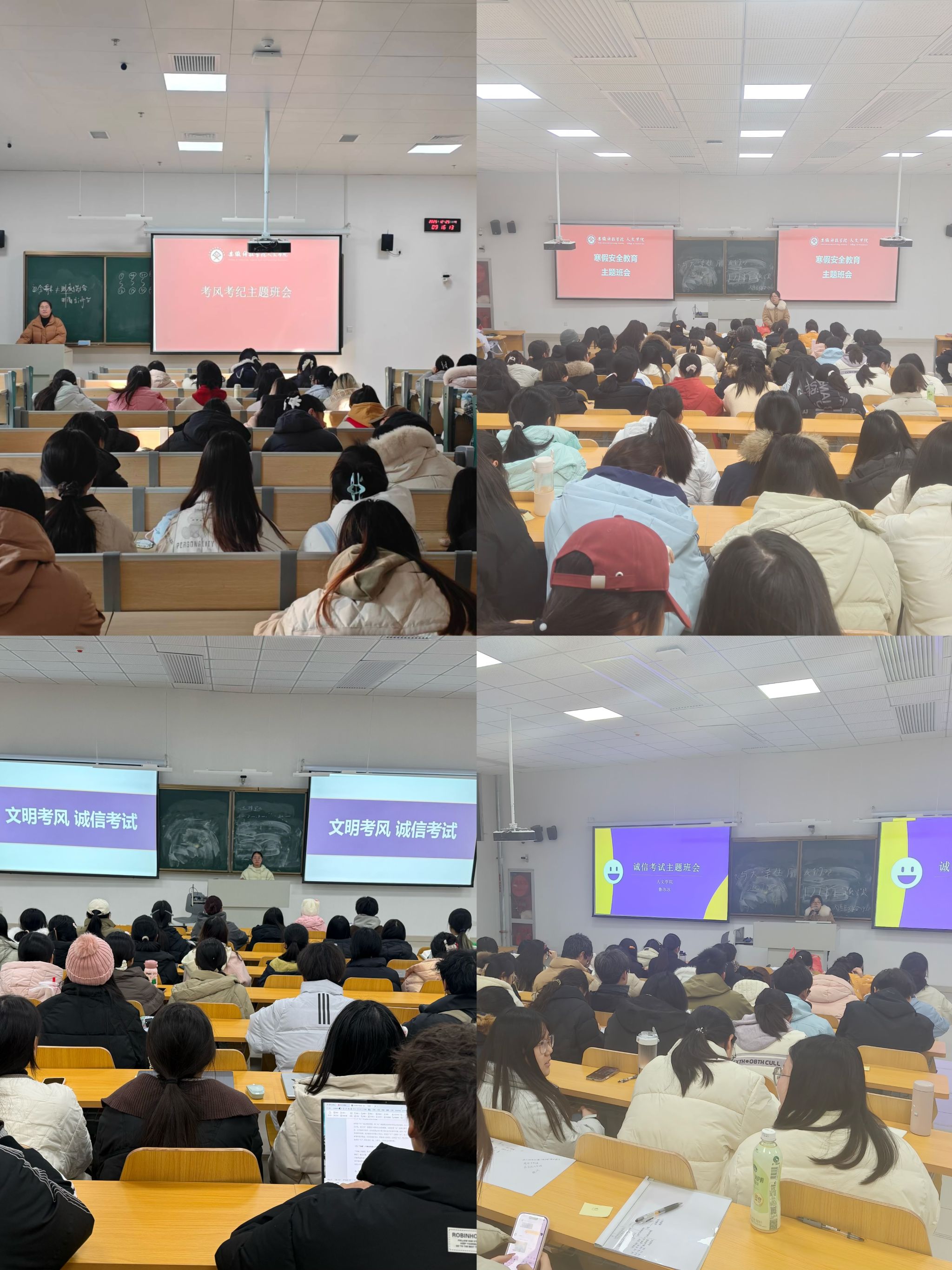 为进一步培育学生诚信品格,规范考试行为,强化安全防范意识,营造风清气正的考试氛围与平安和谐的校园环境,12月22日至25日,人文学校各班级陆续开展“诚信考试与安全教育”主题班会活动。主题班会以正面教育引导为核心,通过丰富多样的形式,让诚信理念深入人心,让安全意识扎根心底。
