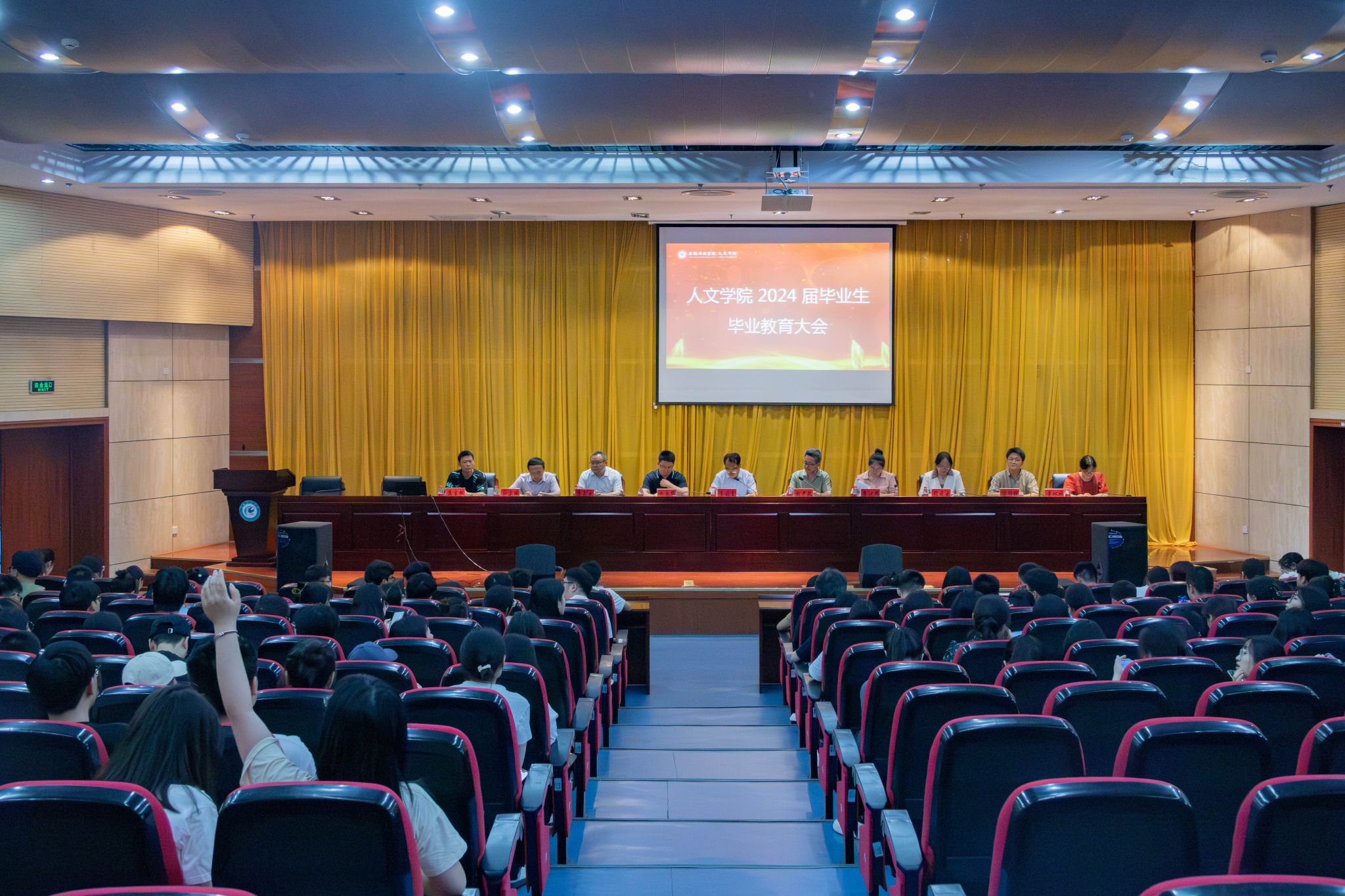 为切实做好2024届毕业生毕业教育及离校服务等工作,5月23日晚,人文学院在新图书馆会议中心二楼报告厅召开2024届毕业生毕业教育大会。学院党委副书记、院长李晓东,正处级组织员张严政,副院长牛永辉,党委副书记李沙娜,中文系主任苏兆龙,教工党支部书记和建伟,法学系主任、教工党支部书记张晓云,党政办公室副主任方明旺,团委副书记焦雪松,副科级辅导员鲁冰冰及2024届全体毕业生参加。会议由张严政主持。