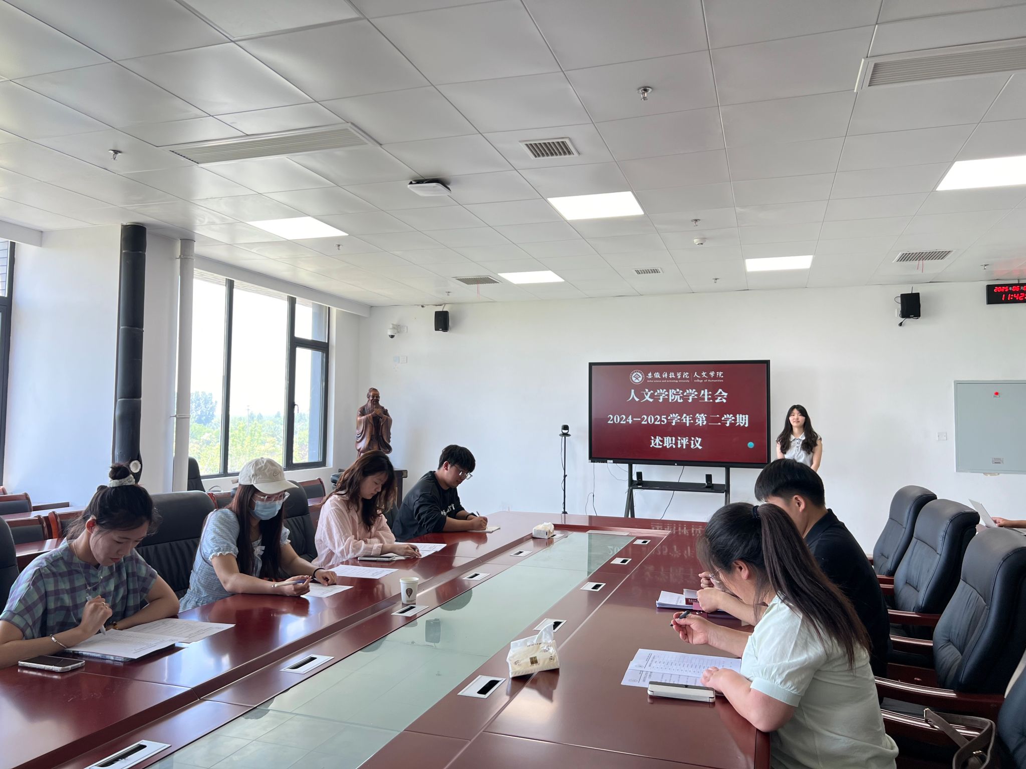 为进一步提升学生会工作水平,激发学生干部担当作为、奋发进取,促进学生会管理服务工作再上新阶,6月6日,人文学院在学院会议室召开学生会2024-2025学年第二学期工作述职会议,学院党委副书记李沙娜、学生会指导老师徐琦琦和学生会主席团成员参会并进行评议。
