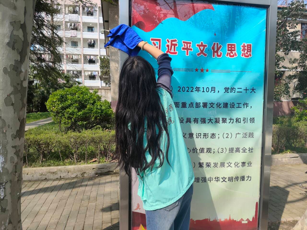 春风拂大地,万物萌生机。为共同打造美丽校园,提高校园环境美观程度,增强同学们对校园环境的关注度和保护意识,人文学院学生会于3月31日至4月1日在乐鱼平台_乐鱼(中国)一站式服务平台东区学知楼、求知楼和南门主干道开展宣传栏清洁校园志愿服务活动,众多同学积极参与。