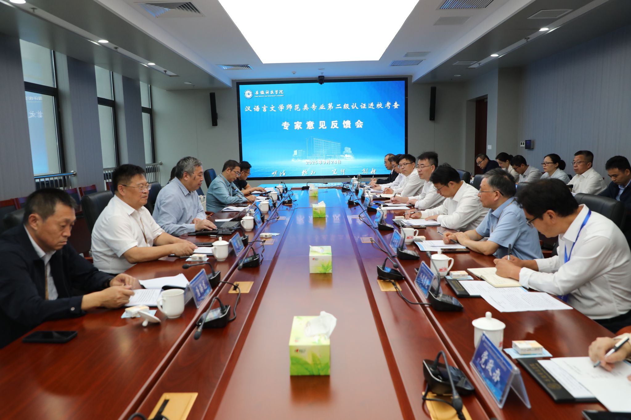 24日上午,专家组意见反馈会在明德楼718会议室举行。专家组全体成员,安徽省教育评估中心主要负责人,学校党委副书记、院长李升和,副院长赵伟峰,相关职能部门主要负责人,人文学院党政领导和汉语言文学专业负责人参加会议。会议由钱进主持。第二级认证进行现场考查。
