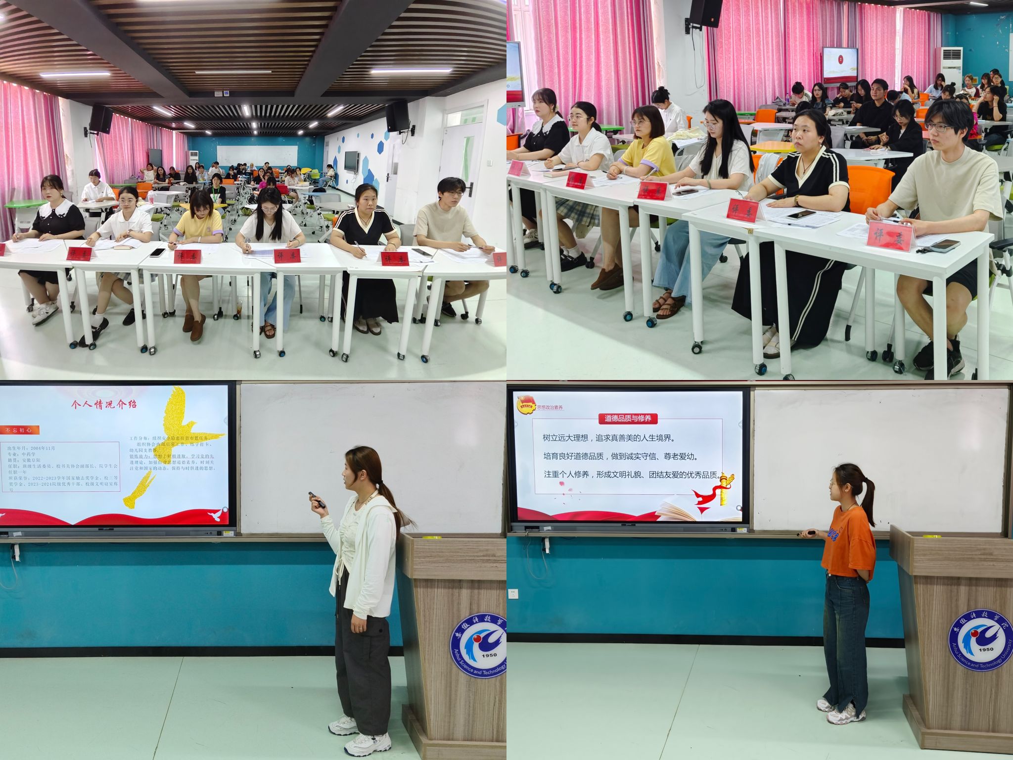 为引领广大青年学生永远跟党走,奋进新征程,进一步遴选德智体美劳全面发展的优秀青年为中国共产主义青年团注入“新鲜血液”,6月20日中午,生命与健康科学学院于求知楼B309教室举办2024年上半年拟发展团员候选人汇报会。学院团委书记姜毅,副科级辅导员孙玉楼,学生会主席团成员张梦茹,团委委员朱琦、张思语、张一鸣听取汇报并担任评委。汇报会由药物制剂231班王暖主持。