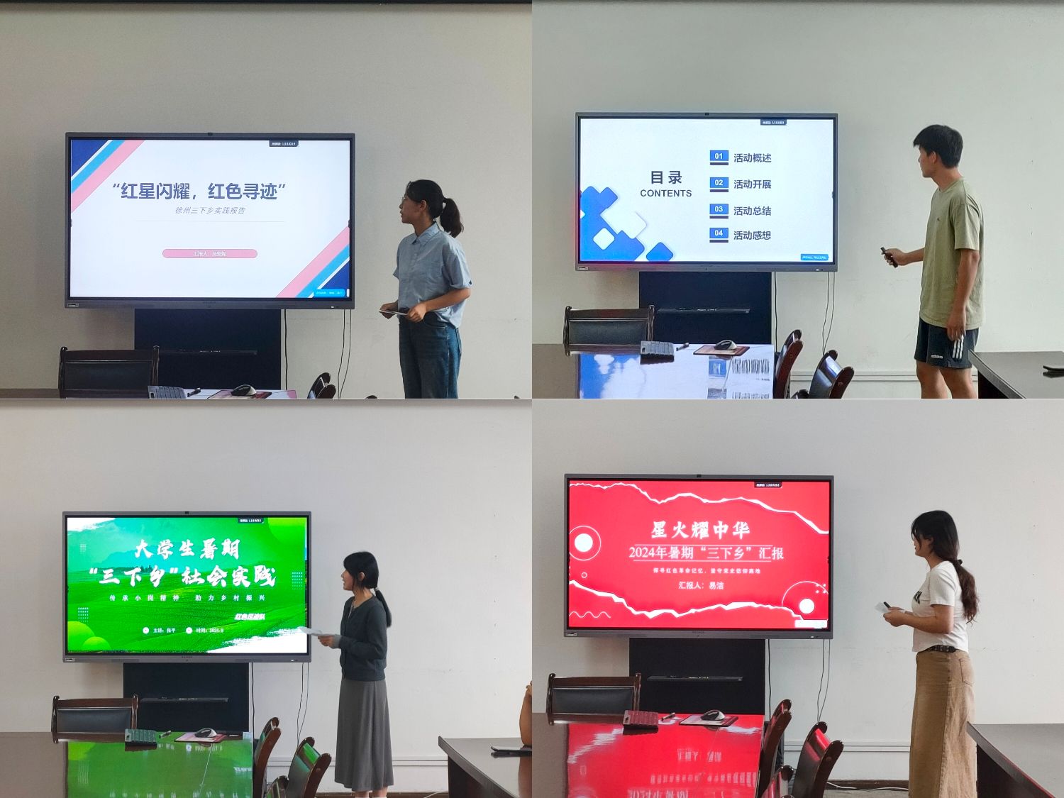 社会实践优秀团队申报代表按照抽签顺序依次上台,结合PPT介绍所在团队活动前期准备、活动内容、开展情况以及过程中所遇问题和经验收获。团队评选汇报结束后,申报社会实践先进个人的同学继续进行汇报展示,汇报人坦言,通过此次实践活动使自己收获颇丰,不仅锻炼了个人的活动策划能力、沟通交流能力,开阔了眼界、提升了实践动手能力。大家纷纷表示,通过本次“三下乡”活动,深刻体会到作为社会一员的责任与使命,激发了对社会问题的关注和思考,培养了回馈社会、服务他人的意识。