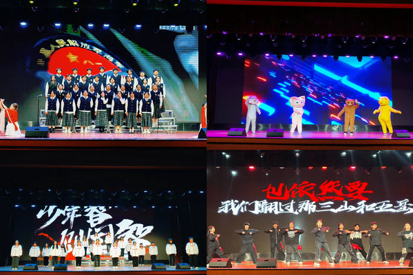 文艺晚会分为“青青子衿,志怀家国”“冉冉向新,执光开路”“灼灼风华,向阳追梦”等三个篇章。DC街舞社带来的开场舞《山河图》拉开了晚会序幕;红歌合唱《盛世如愿》《当那一天来临》振奋人心,表达了对伟大祖国的深厚情感、深情祝福;精心编排的手语舞《少年中国说》,表达了新时代青年学生的奋斗精神和追求卓越的昂扬状态;配音《安科传》、小品《甄嬛歪传》、舞蹈《红高粱模特队》、凤阳花鼓《鼓乡情韵》、玩偶舞及中场游戏环节,惊喜不断,精彩呈现,气氛热烈。大合唱《相亲相爱》,台上台下齐唱共鸣,场面温馨、祝福美好。