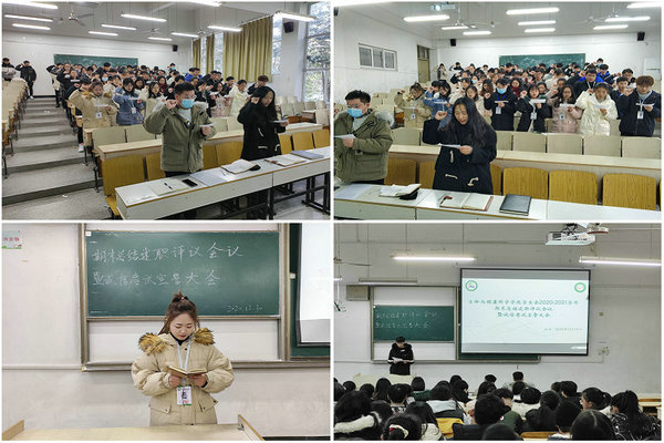 12月30日中午,生命与健康科学学院学生会在求知楼A103教室召开期末述职评议总结会议暨诚信考试宣誓大会。学生会全体成员参与此次会议。本次会议由朱道广主持。