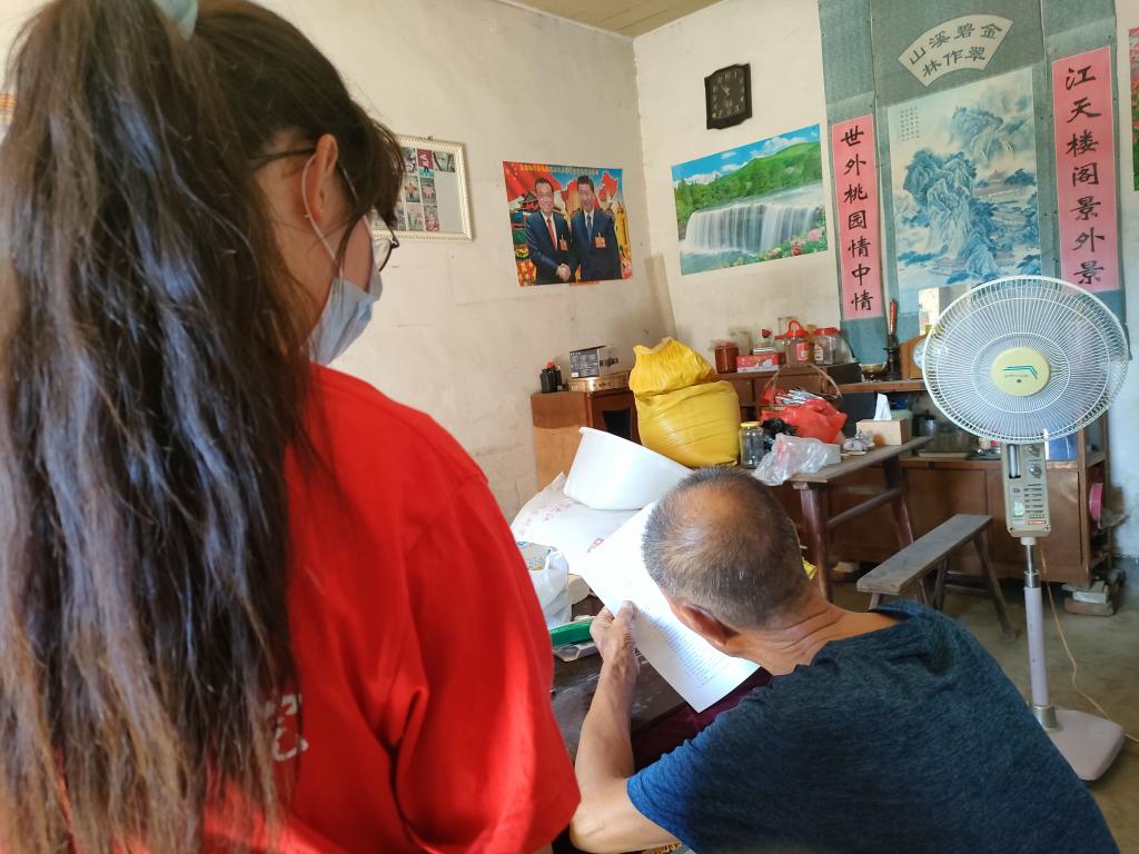 准备工作结束后,实践团队有序组织、各自分工前往各地走访调查。走进社区,团队成员通过村干部和工作人员的走访交谈,了解当地居民接种新冠疫苗情况和社区疫情防控常态化工作落实情况。为深入了解人民对此次新冠疫情的认识和感受,实践团队走进居民家中以发放调查问卷的形式展开调查,统计了居民对疫情期间政府采取的防控措施、防控响应速度以及行政效率等情况。实践过程中,成员们还邀请当地居民一起观看抗疫视频,解读抗疫故事,与居民一起回顾疫情期间的感人事迹,宣传伟大抗疫精神,增强了群众对疫情防控常态化的认知度。