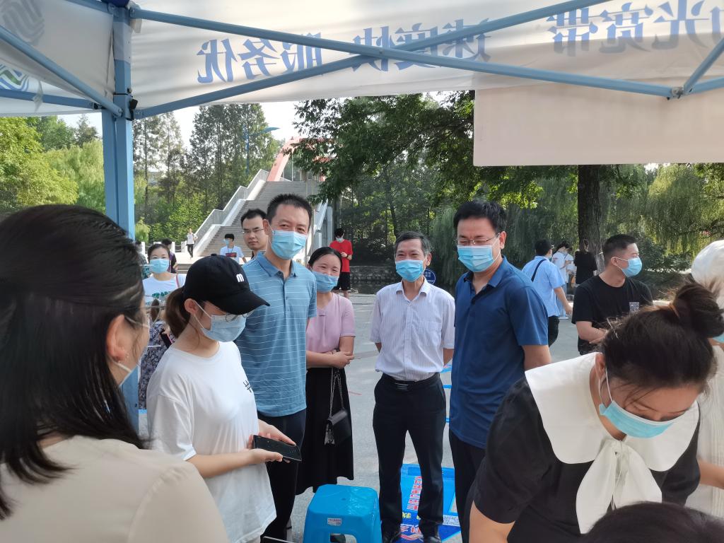 正当迎新工作进行的如火如荼的时候,校领导走进迎新现场,走访询问迎新工作的开展情况,慰问新生及学院工作人员。