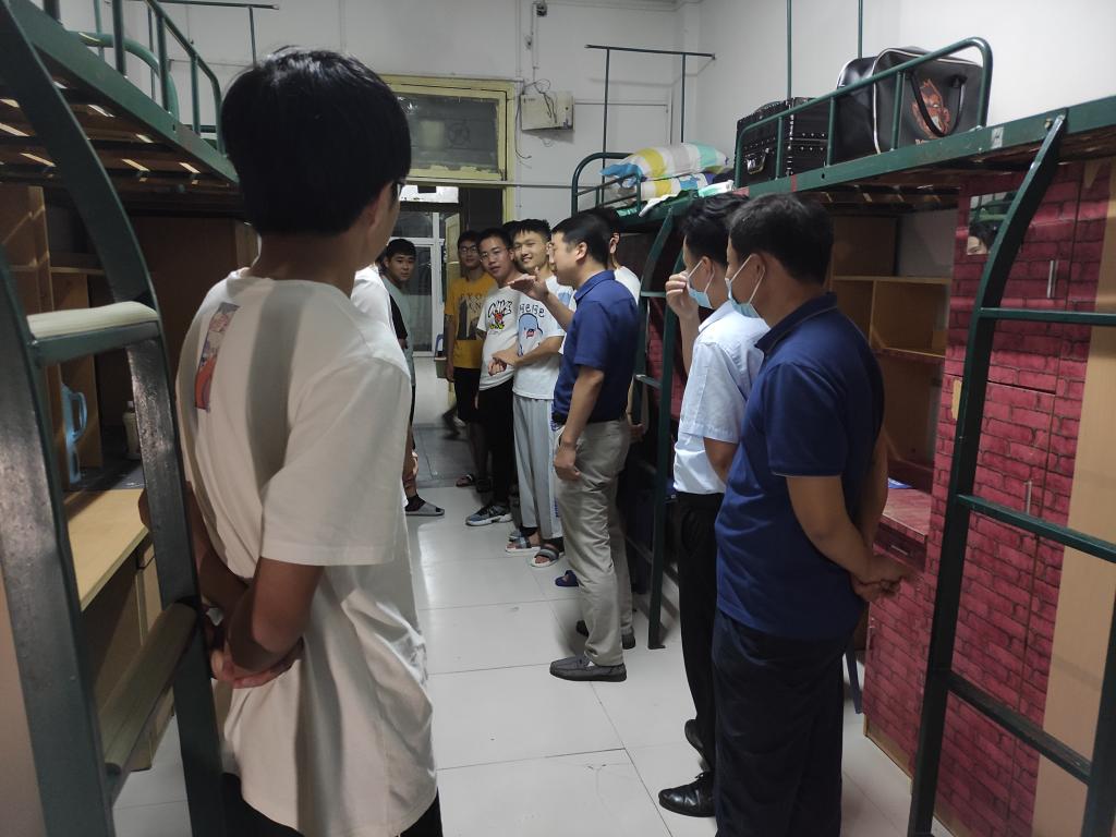 走进新生宿舍,学院领导老师首先对新生的到来表示欢迎,并与新生们亲切交谈,了解他们的家乡、家庭情况、录取专业以及入校感受等,并就新生们提出的关于生活和学习方面的问题进行解答。对于后续的学生工作安排,学院领导指出,疫情防控工作已进入常态化,希望同学们要充分理解当前学校“非必要不外出”的特殊要求,做好自身健康管理。同时,要注意宿舍用电防火、人身财产安全,强化安全意识和自我保护意识,遇到困难及时和辅导员、老师沟通交流。最后孙玉军向新生提出殷切期望,希望同学们尽快转变角色,熟悉校园环境,建立和谐友好的人际关系,以积极的心态和良好的面貌适应大学校园生活。他还勉励大家要珍惜大学时光,刻苦学习知识,锻炼强国本领,做好人生目标规划,通过不懈奋斗去实现梦想,争做担当民族复兴大任的时代新人。