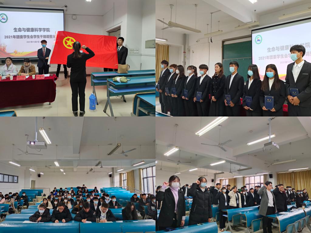 12月1日下午,生命与健康科学学院在新知楼B303教室召开2021年团委学生会学生干部调整大会。学院党委副书记彭丽萍、党政办公室主任王传林、正科级辅导员兼正科级组织员邓艳萍、团委副书记姜毅、专职辅导员孙玉楼及专职辅导员张迪出席会议。上一任学生会部分成员和现任团委学生会全体成员参加会议。会议由姜毅主持。