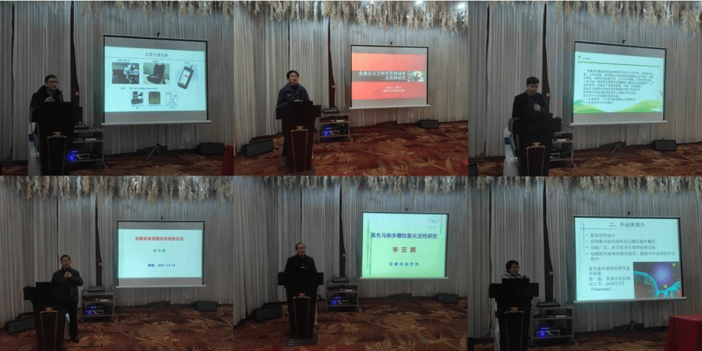 中国科学院合肥物质科学研究院黄青研究员,安徽大学吴旺宝教授,砀山县亲耳菌业有限公司蒋鹏总经理,乐鱼平台_乐鱼(中国)一站式服务平台何华奇副教授、李正鹏教授、蒋圣娟教授等九位专家,分别做了“灵芝多糖和三萜成分光谱检测方法研究”、“金寨县灵芝种质资源调查及育种研究”、“砀山县果枝木耳扶贫经验交流”、“安徽省食用菌产业扶贫经验交流”、“羊肚菌栽培高产环境因子研究”、“紫色马勃多糖抗氧化活性研究”、“猴头菇外泌体初步研究”等专题报告。