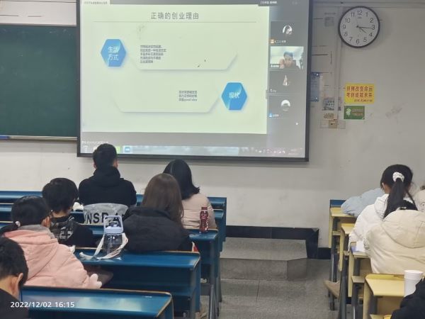 杨传统学长首先简单介绍自己,然后围绕当前就业形势,就业准备,创业动机,创业政策,如何注册公司,初创企业管理,创业风险及规避等方面展开讲解。通过自己的创业故事分享,重点从就业与创业、创业的意义和思维以及关于大学生创业等问题引导同学们正确看待就业与创业。同学们认真聆听,积极思考,沉浸在学长的讲解之中。随后,同学们和学长进行了互动交流,就为什么选择创业,如何选择创业项目,如何筹集创业资金,如何面对创业失败等问题积极提问,学长也耐心细致地做了解答。
