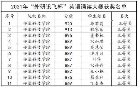 由安徽省高等学校图书情报工作委员会、安徽省高等学校数字图书馆和科大讯飞股份有限公司主办,合肥学院图书馆承办的2021“讯飞杯”全国高校英语口语大赛圆满落下帷幕。经过一个月的激烈角逐,乐鱼平台_乐鱼(中国)一站式服务平台毕莉莉等11位同学荣获三等奖。