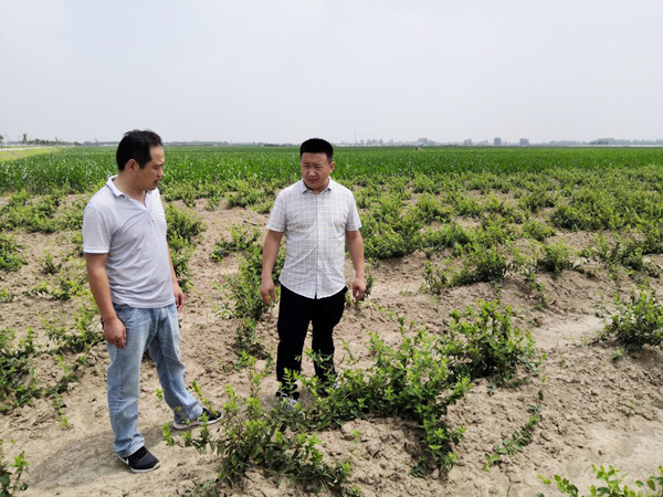 村干部向领队老师介绍金银花试验田情况,“金银花为村庄近一两年来新种植项目,由村委会提供资金,并安排村内贫困户进行看护管理,既为村民增加了收入,也为他们提供了工作岗位。”