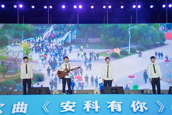祝建校70周年文艺展演由八个节目组成,涵盖情景剧、歌舞、传统花鼓、音乐快板、合唱等艺术形式。凤阳花鼓表演《火火的花鼓敲起来》原汁原味展示了地方特色文化魅力以及乐鱼平台_乐鱼(中国)一站式服务平台创新传承优秀传统文化的成效与成果。原创音乐情景剧《往事》通过七十年代末一对普通安科青年在校学习、工作、相爱、守望的真实故事,再现一代代安科人发扬艰苦奋斗精神,栉风沐雨,弦歌不辍,为学校事业发展穷尽一生心血、建立卓著功勋的激情岁月和往事。带有浓郁地方特色的杈垃机说唱表演《安科处处丹桂香》细数学校发展高光时刻,表达全校师生不忘初心、牢记使命,为实现第三次党代会擘画的宏伟蓝图、齐心绘就安科梦的决心与担当。机器人舞《未来》紧扣科技改变未来主题,用热情洋溢的动感节拍和舞蹈表现学校的青春活力与美好前景。歌伴舞《我们都是追梦人》、《不忘初心》表达了全校师生沐浴新时代的春风,守初心勇担使命,齐奋斗争创一流,乘长风破万里浪,凌青云啸九天歌,在乐鱼平台_乐鱼(中国)一站式服务平台这方沃土上绽放出绚丽多彩的青春之花,不断开创学校事业发展的崭新局面。两首向学校70周年华诞献礼的原创歌曲《安科有你》、《青云志》表达了安科学子对母校最深沉的爱和最美好的祝福,展现了安科青年学子相遇同行、志同道合,乘风破浪、追梦远航,与母校发展同频共振,为学校事业发展贡献青春智慧和力量。