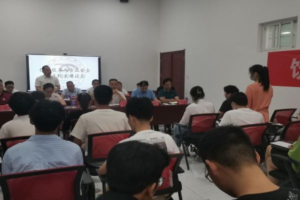 为配合学校食堂饮食服务与食品安全工作,解决同学们在食堂遇到的大大小小的问题。伙食民主管理委员会于2021年6月26日在大学生活动中心多功能厅召开“饮食服务与食品安全”学生代表座谈会。后勤保障部主任胡明,党委学工部副部长、学生处副处长陈君君,校团委张古品老师,饮食服务监管中心负责人及凤阳校区伙管会主任张洁茹,龙湖校区伙管会张翰、朱嘉童参加会议。在校服务的七家餐饮企业项目负责人及各二级学院学生代表参加了会议。