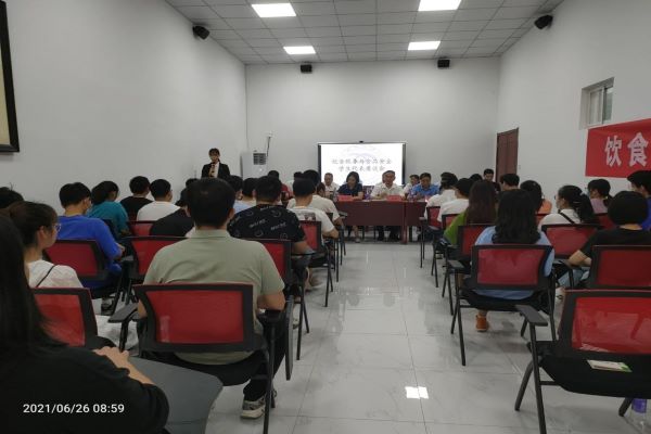 为配合学校食堂饮食服务与食品安全工作,解决同学们在食堂遇到的大大小小的问题。伙管会于2021年6月26日在大学生活动中心新媒体会议室召开“饮食服务与食品安全”学生代表座谈会。党委学工部副部长、学生处副处长陈君君,后勤保障部主任胡明,校团委张古品老师,饮食服务监管中心负责人及凤阳校区伙管会主任张洁茹,龙湖校区伙管会张翰和朱嘉童参加会议。在校服务的七家餐饮企业项目负责人及各二级学院学生代表也参加会议。本次会议由箐英社谢洪汇主持。