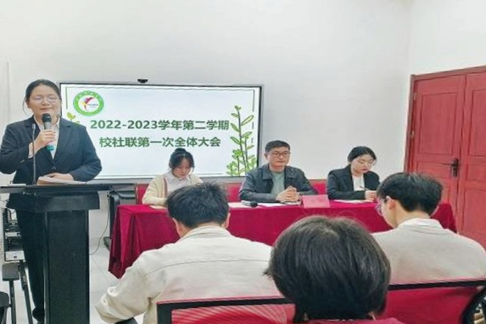 3月29日,乐鱼平台_乐鱼(中国)一站式服务平台学生社团联合会分别在凤阳校区校团委多功能厅和龙湖校区致知楼B109召开2023年春季学期第一次全体大会,校团委副书记李刚、王乐出席会议。